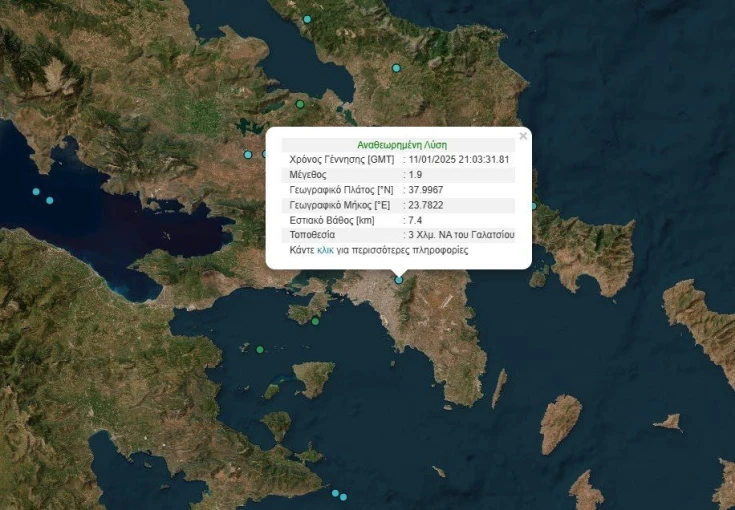 Ειδικότερα, σύμφωνα με την Αυτόματη λύση του Γεωδυναμικού Ινστιτούτου του Εθνικού Αστεροσκοπείου Αθηνών, ο σεισμός είχε μέγεθος 1,9 Ρίχτερ και το επίκεντρο εντοπίστηκε 3 χιλιόμετρα, νοτιοανατολικά του Γαλατσίου, ενώ το εστιακό βάθος προσδιορίστηκε στα 7,4 χιλιόμετρα.